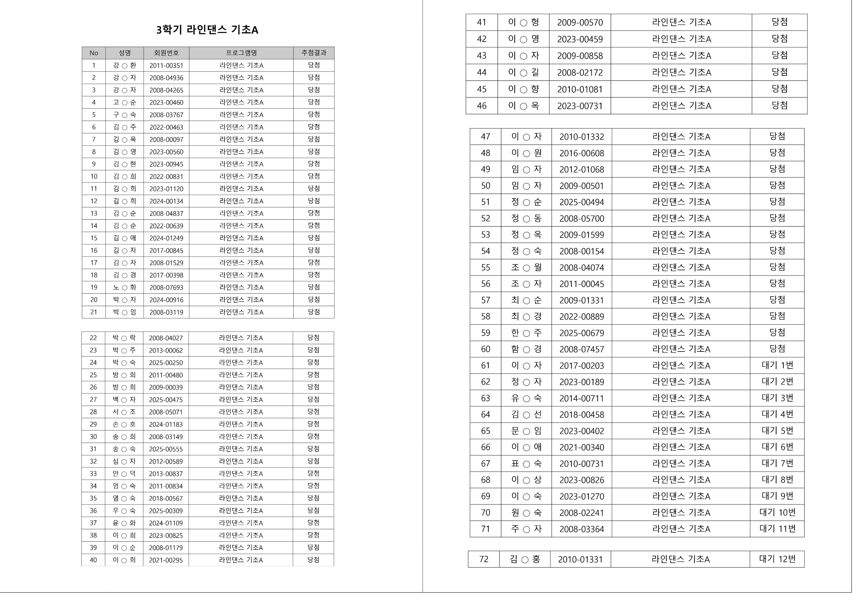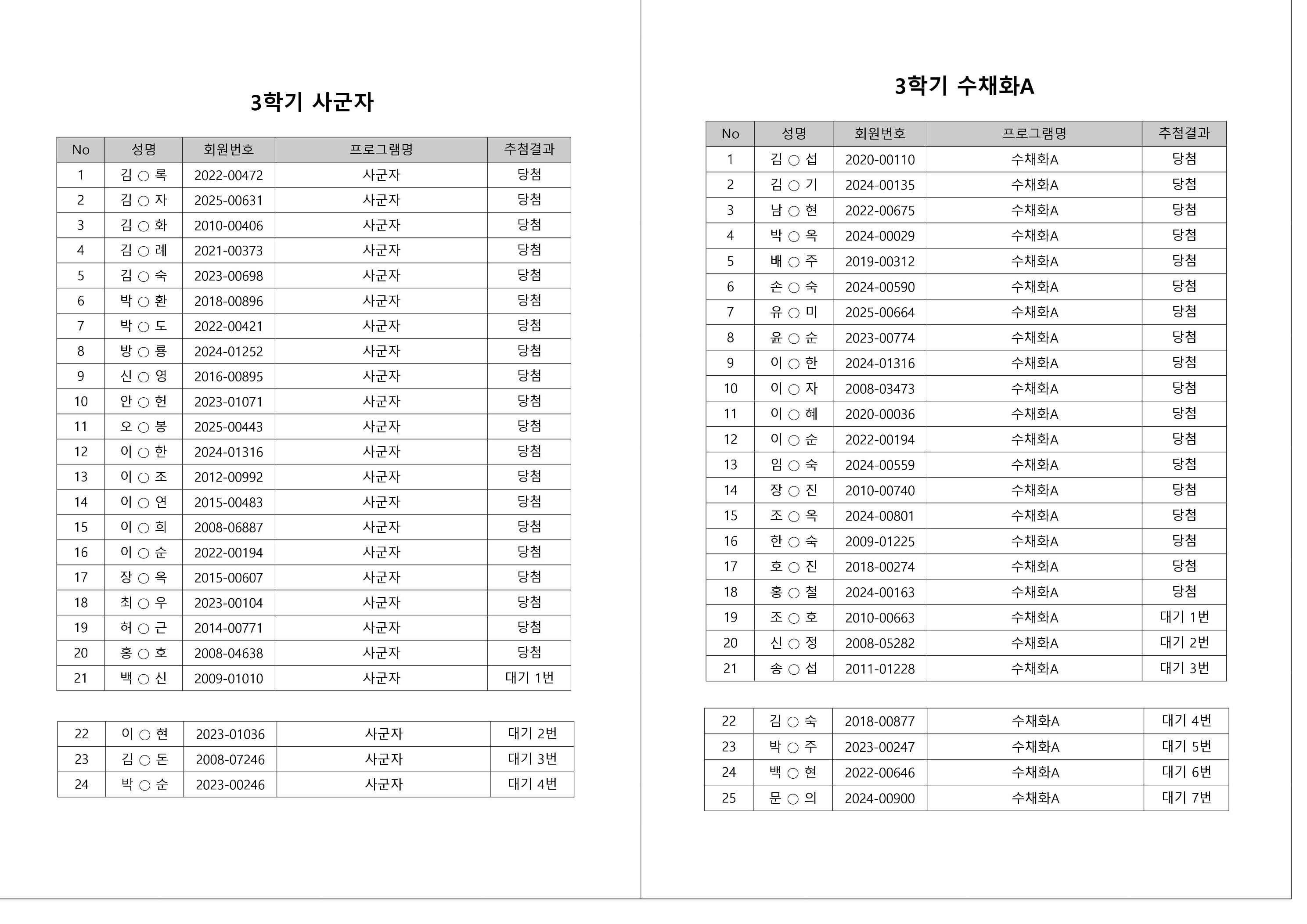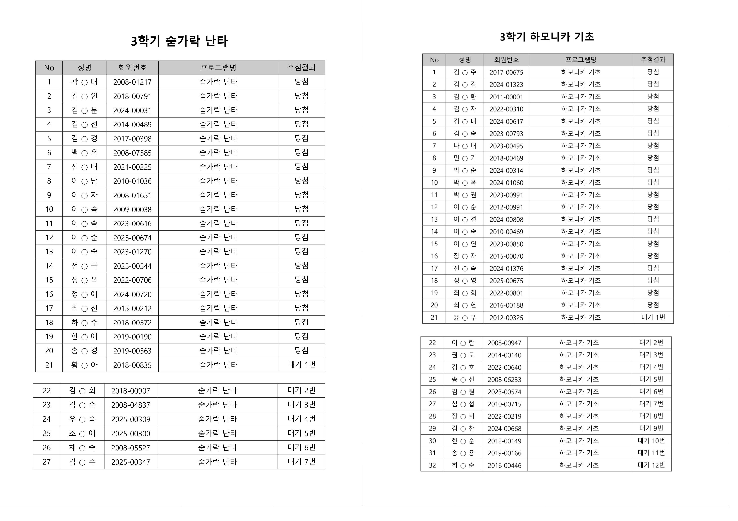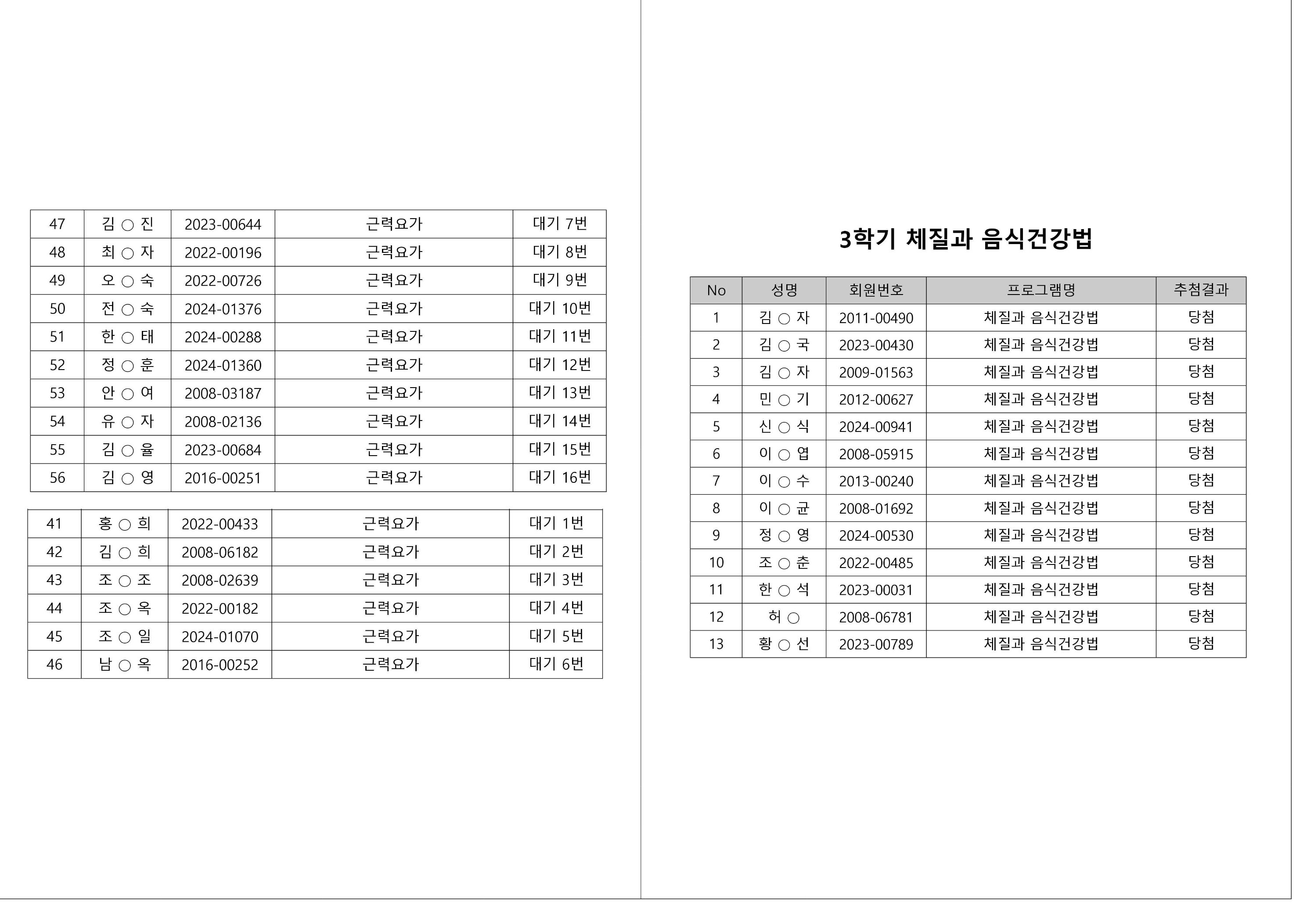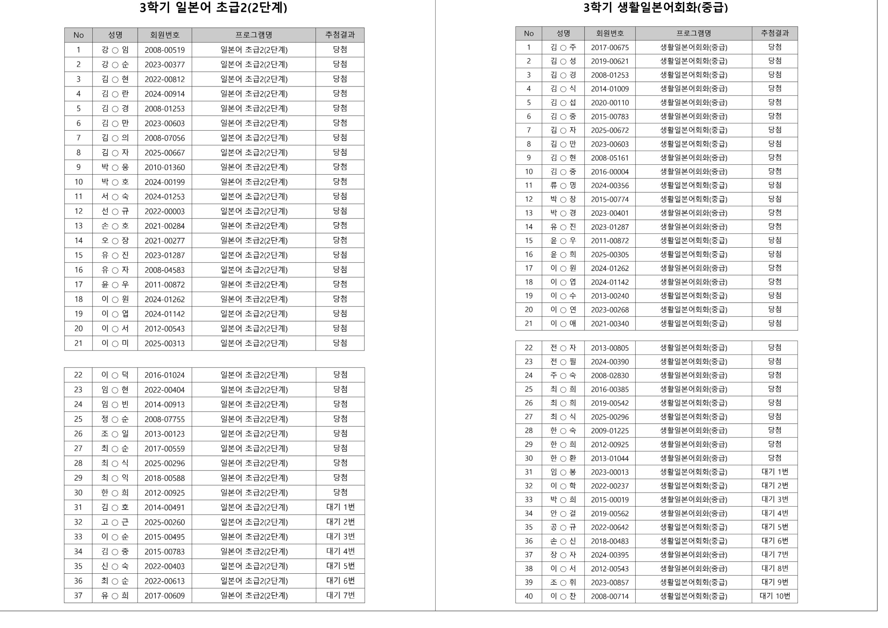 대기자의 경우, 대기자 접수 진행일자별로 매번 직접 확인하셔야합니다.