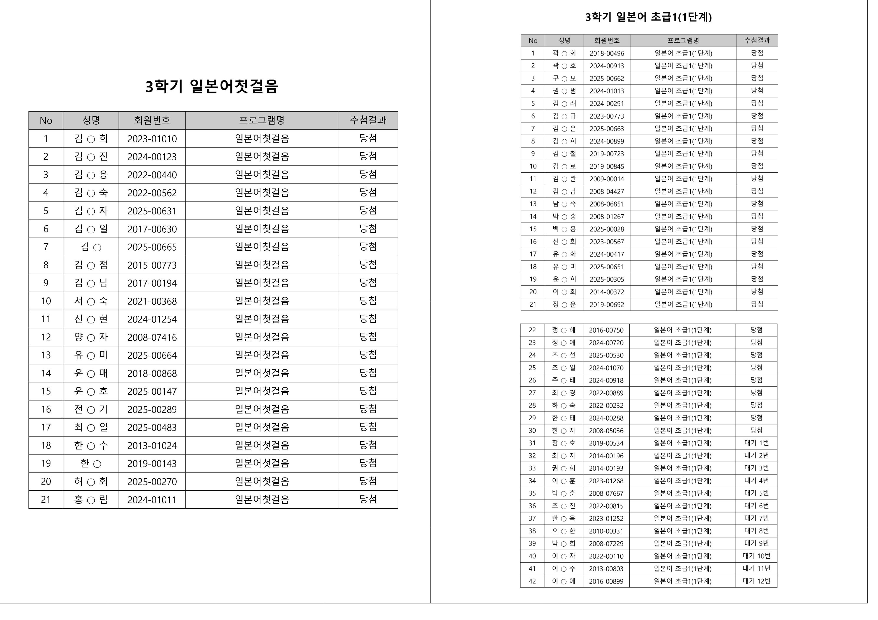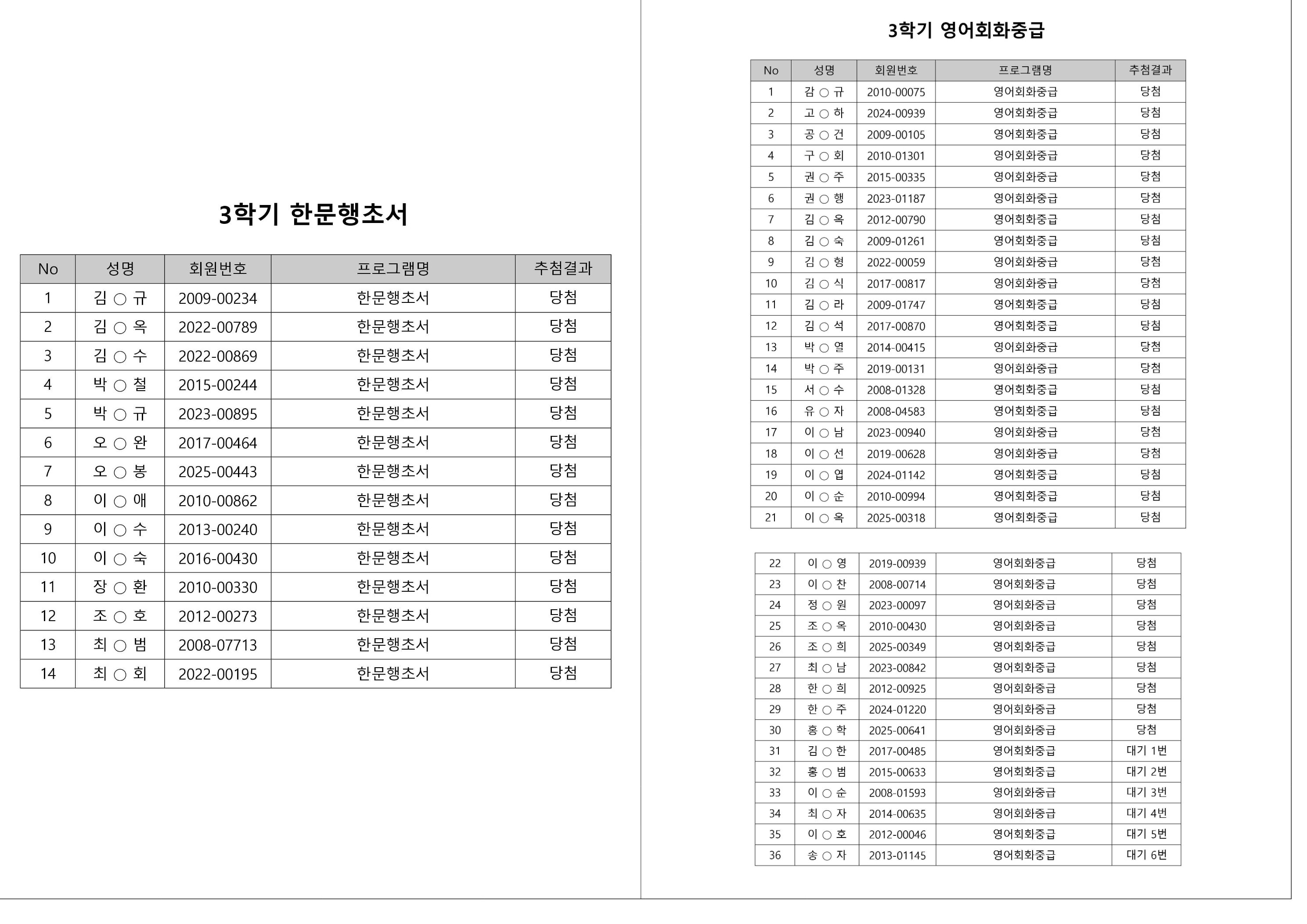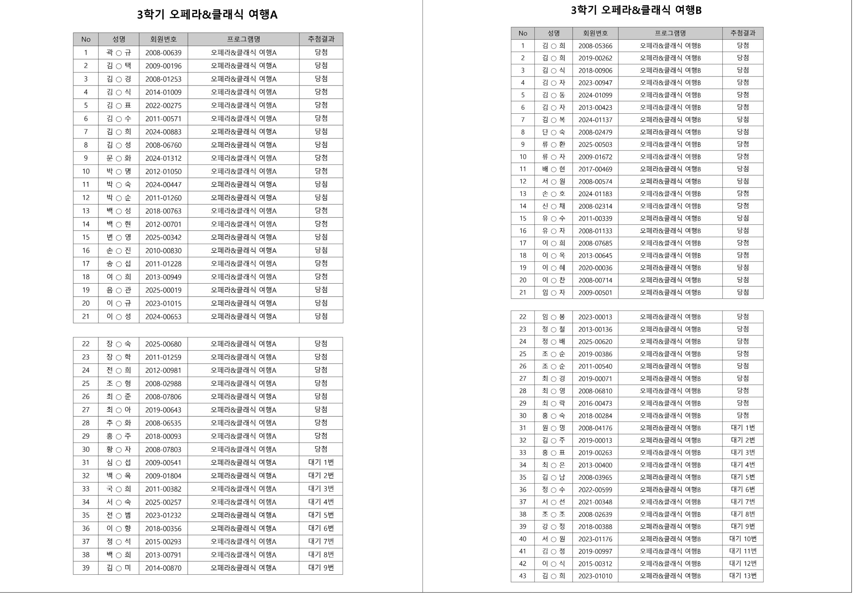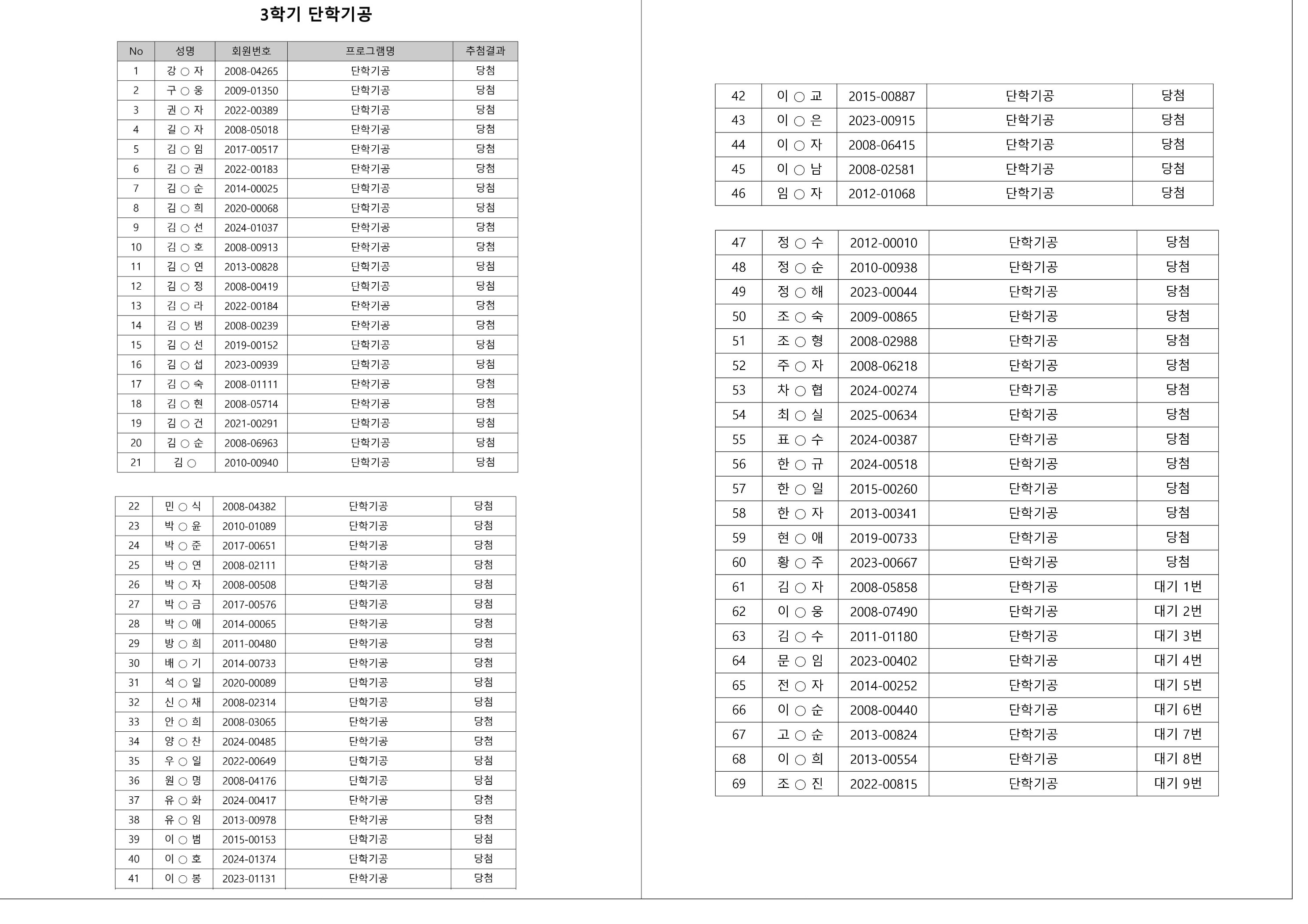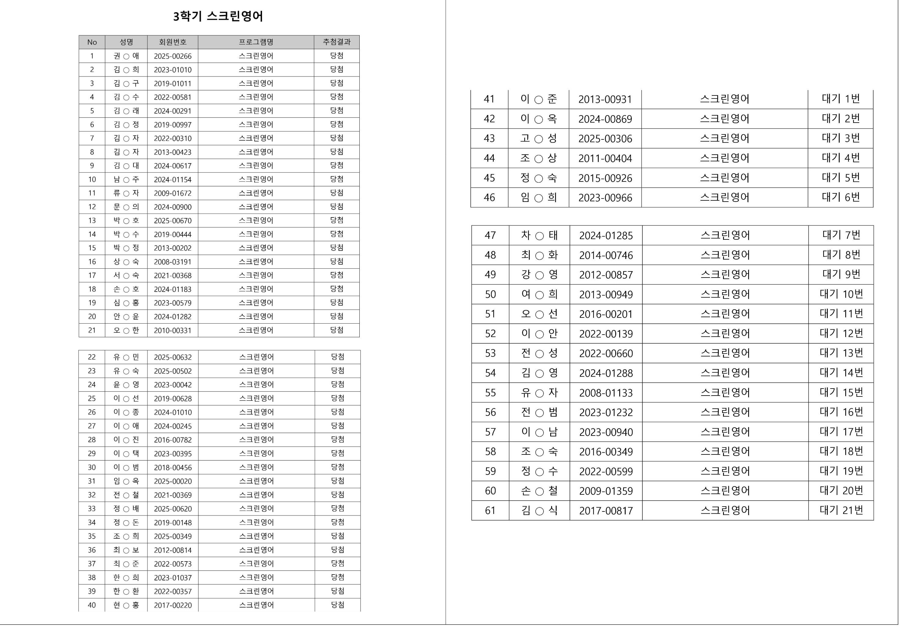 대기자의 경우, 대기자 접수 진행일자별로 매번 직접 확인하셔야합니다.