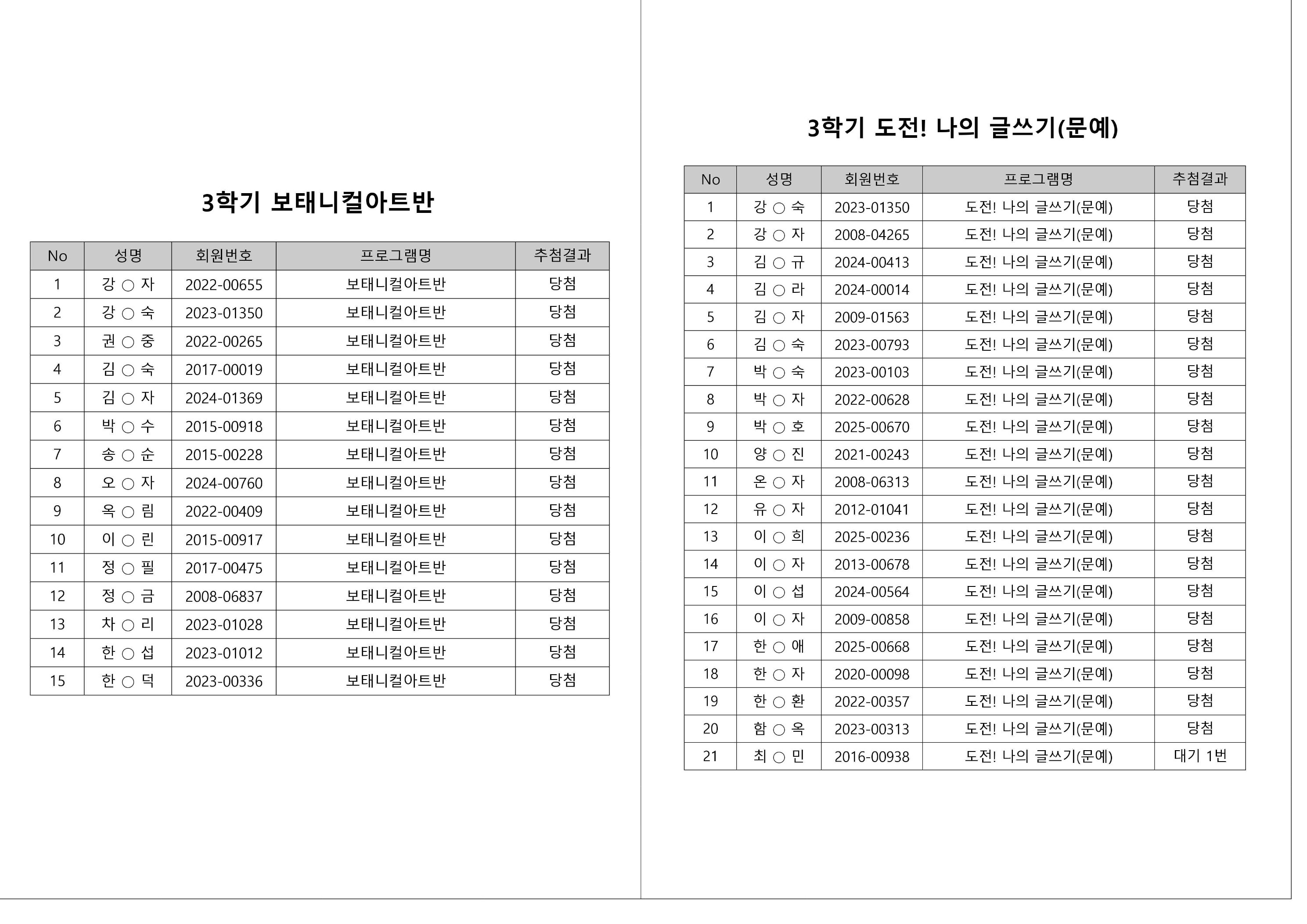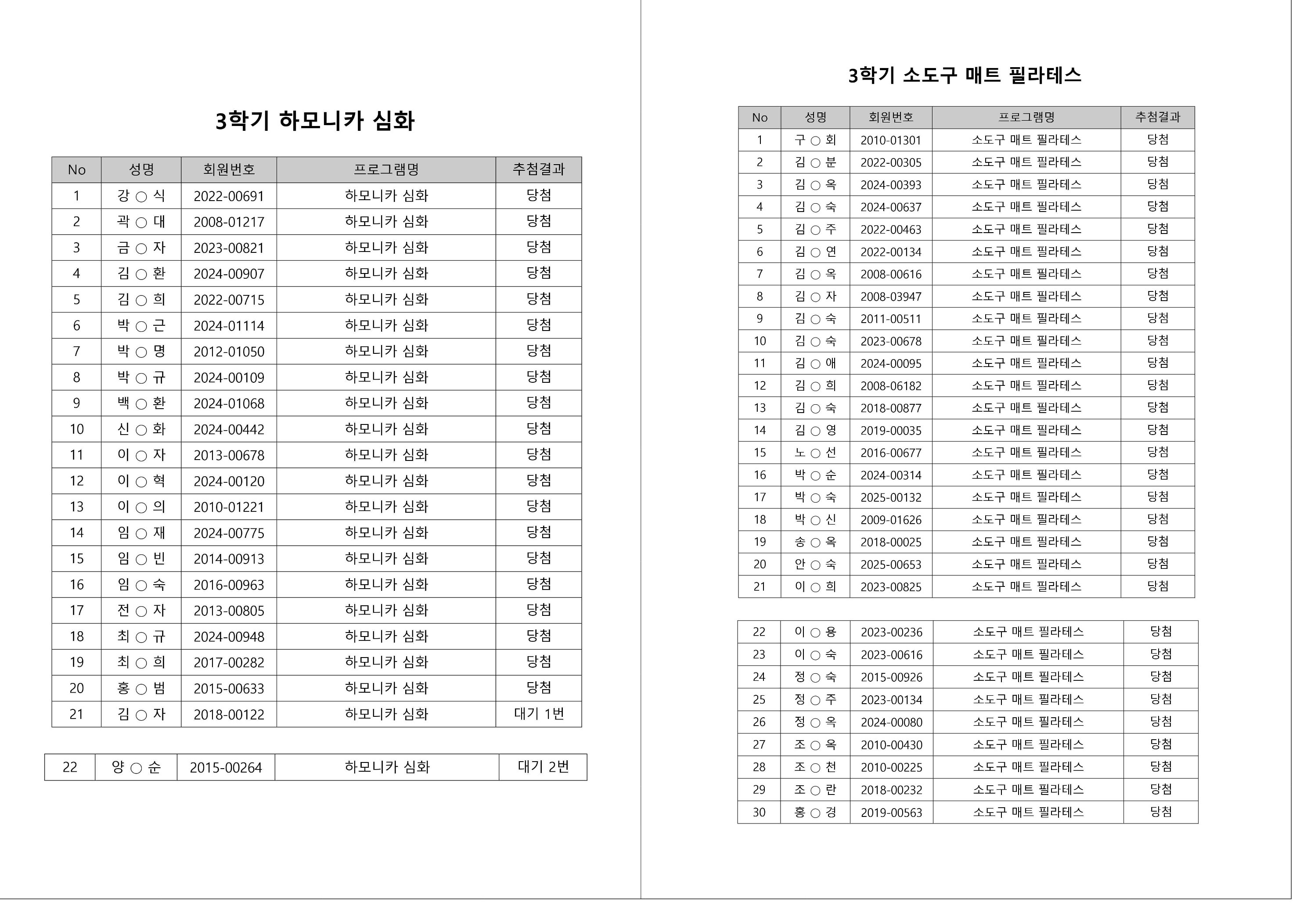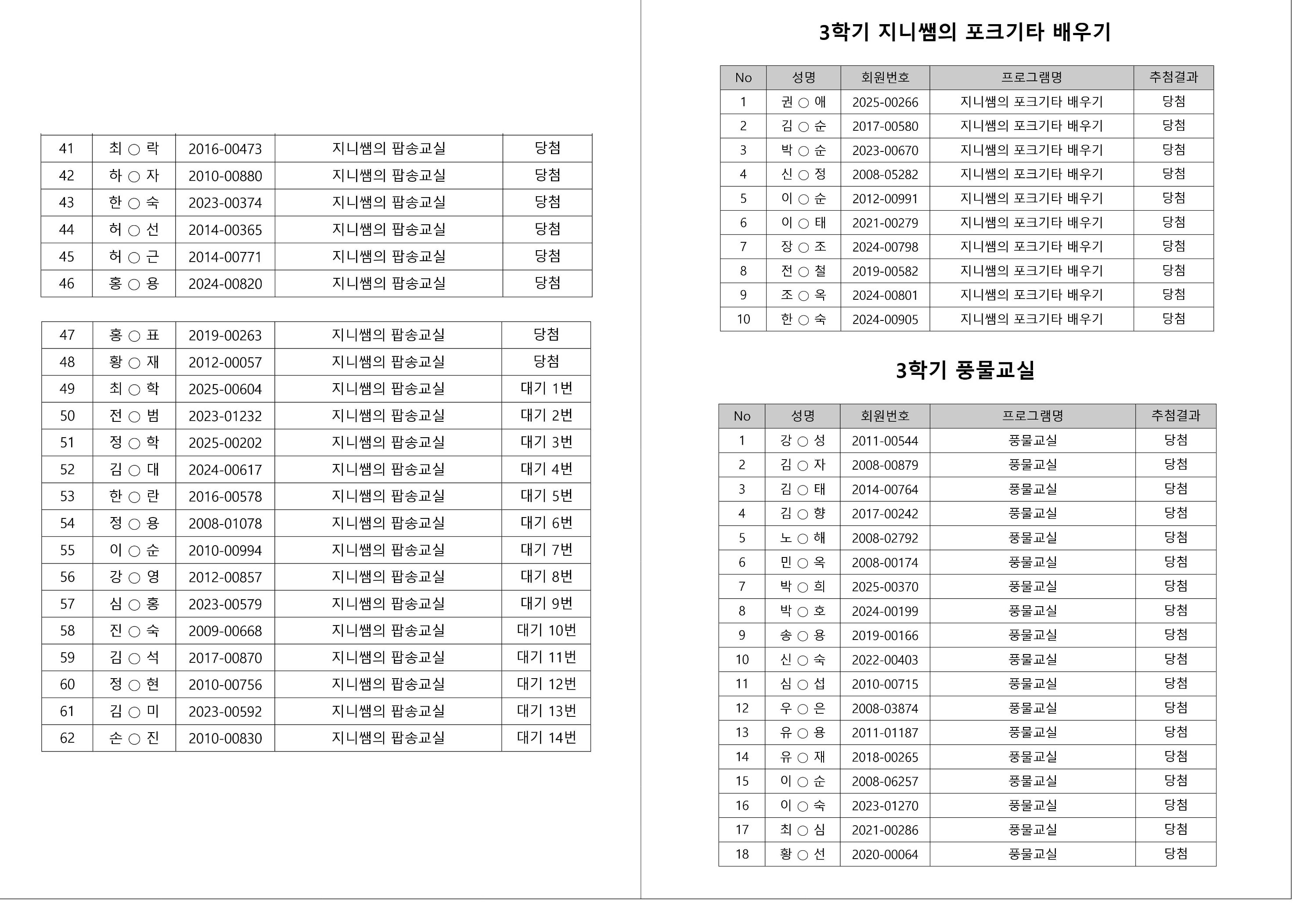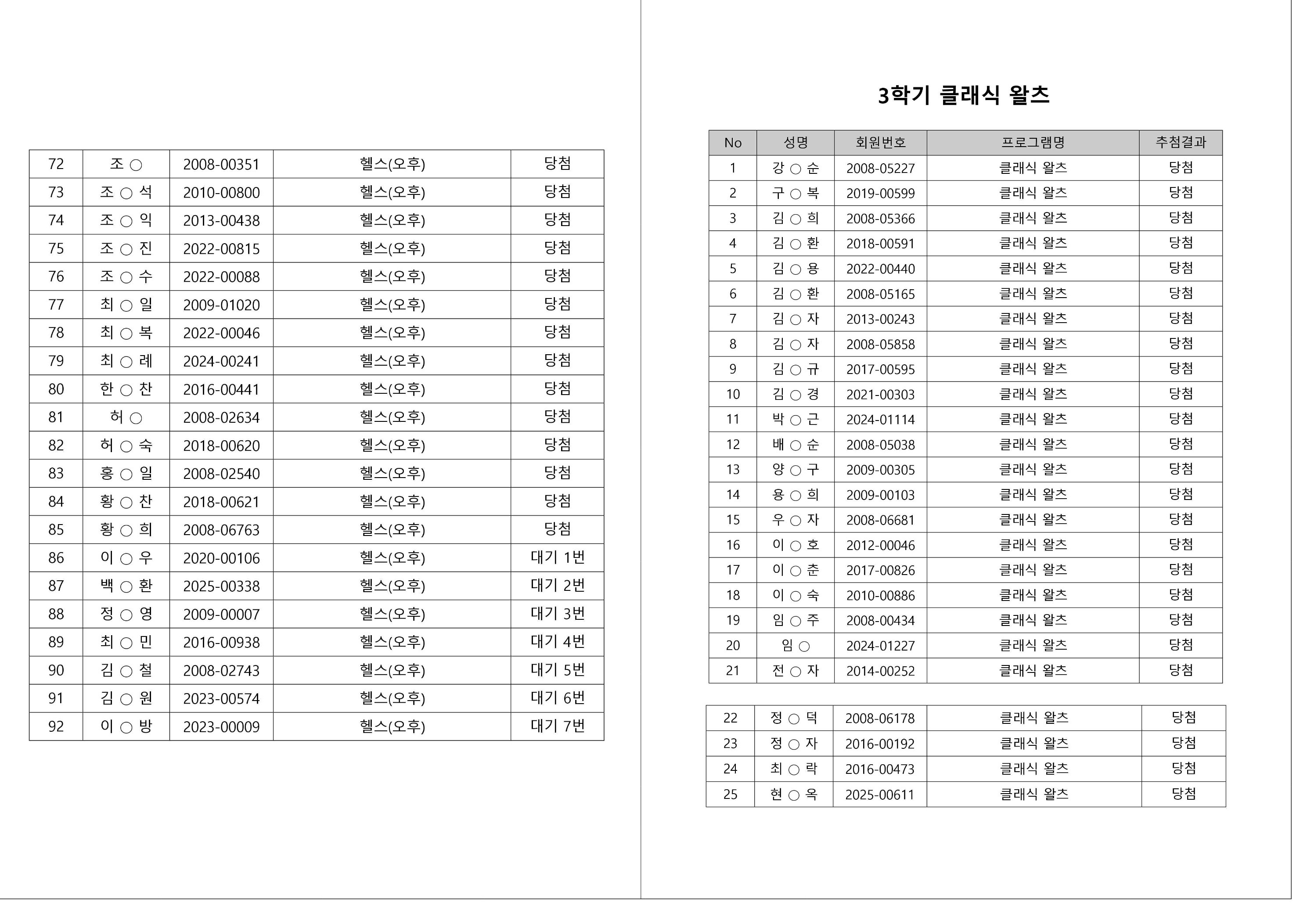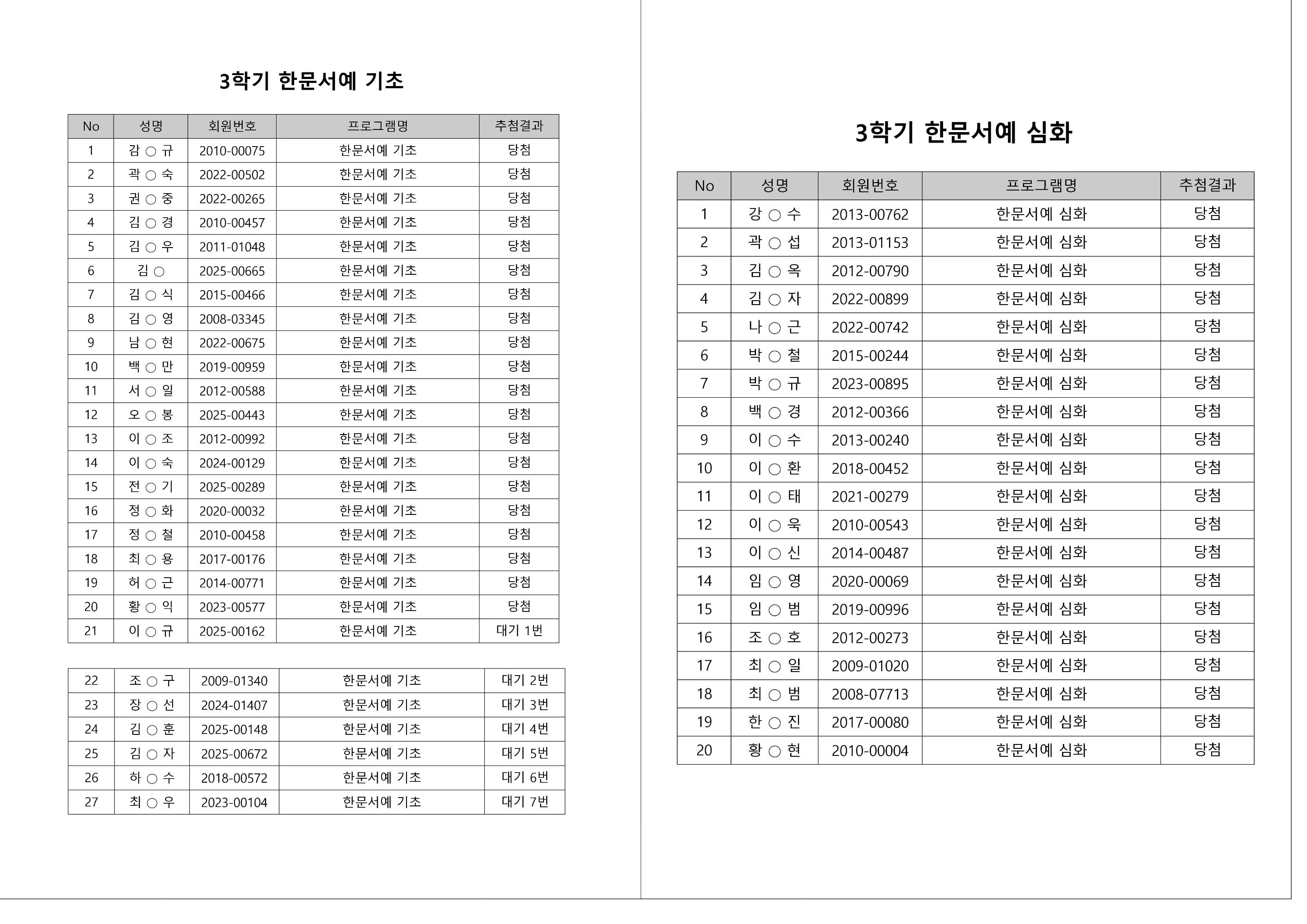 대기자의 경우, 대기자 접수 진행일자별로 매번 직접 확인하셔야합니다.