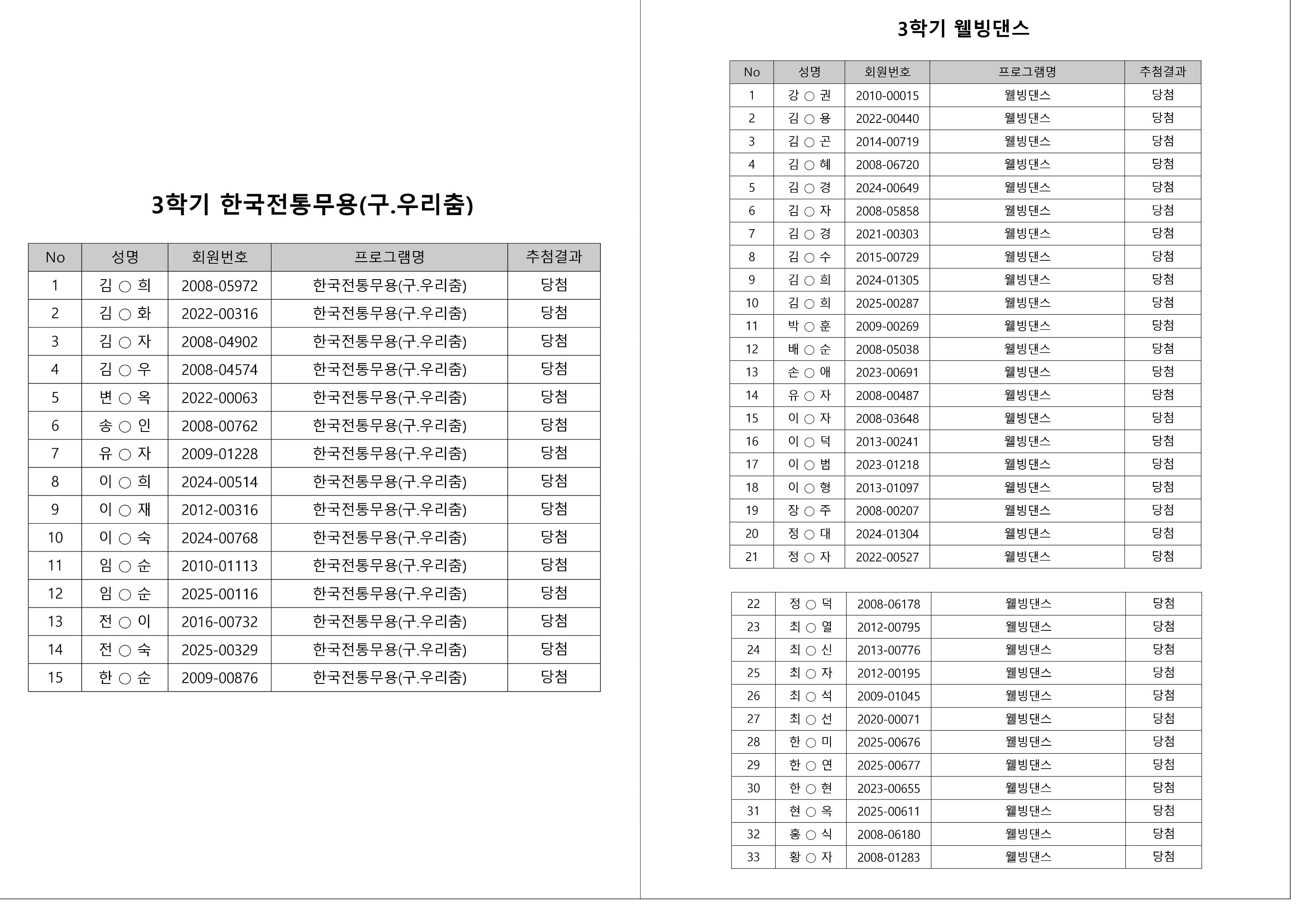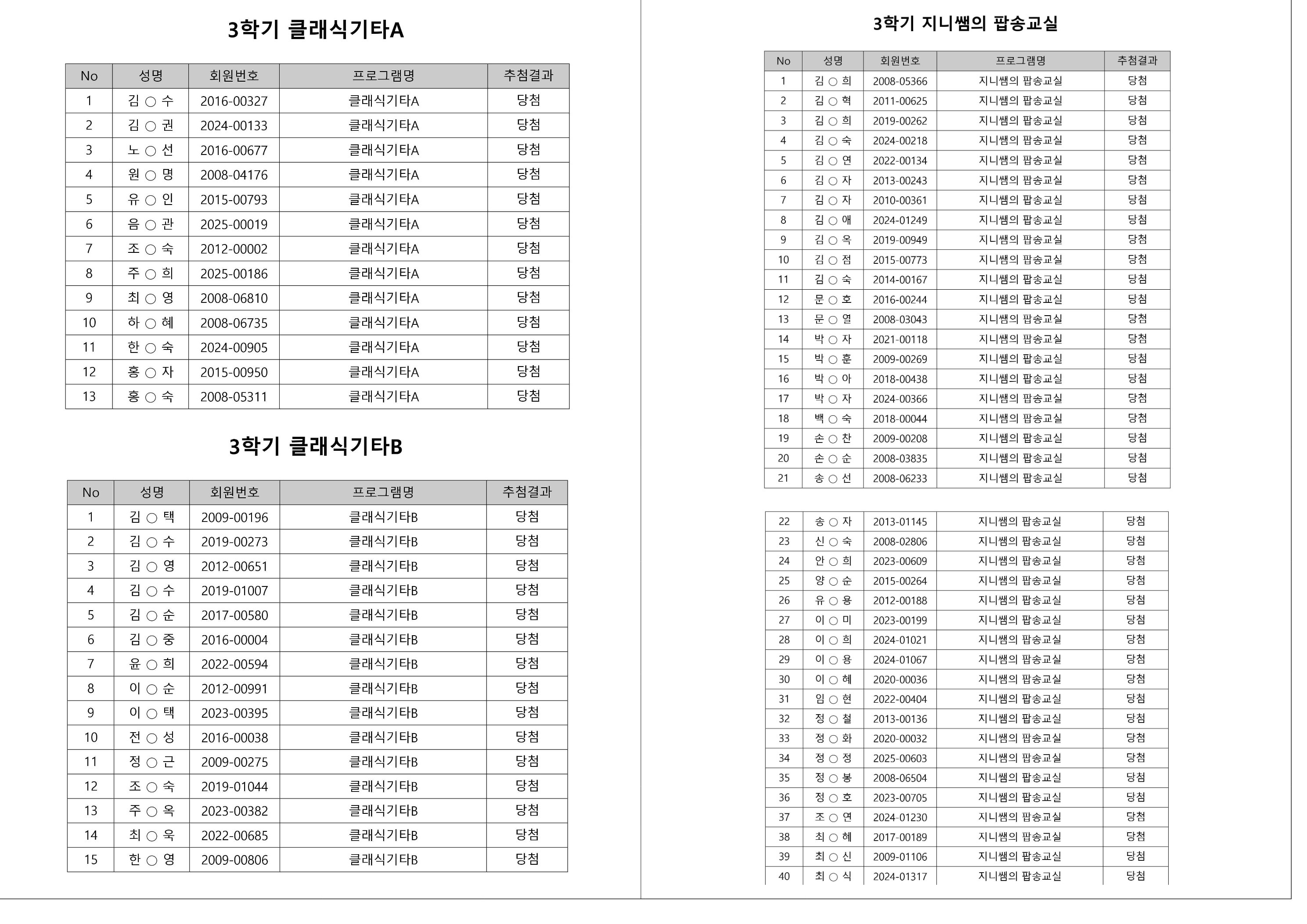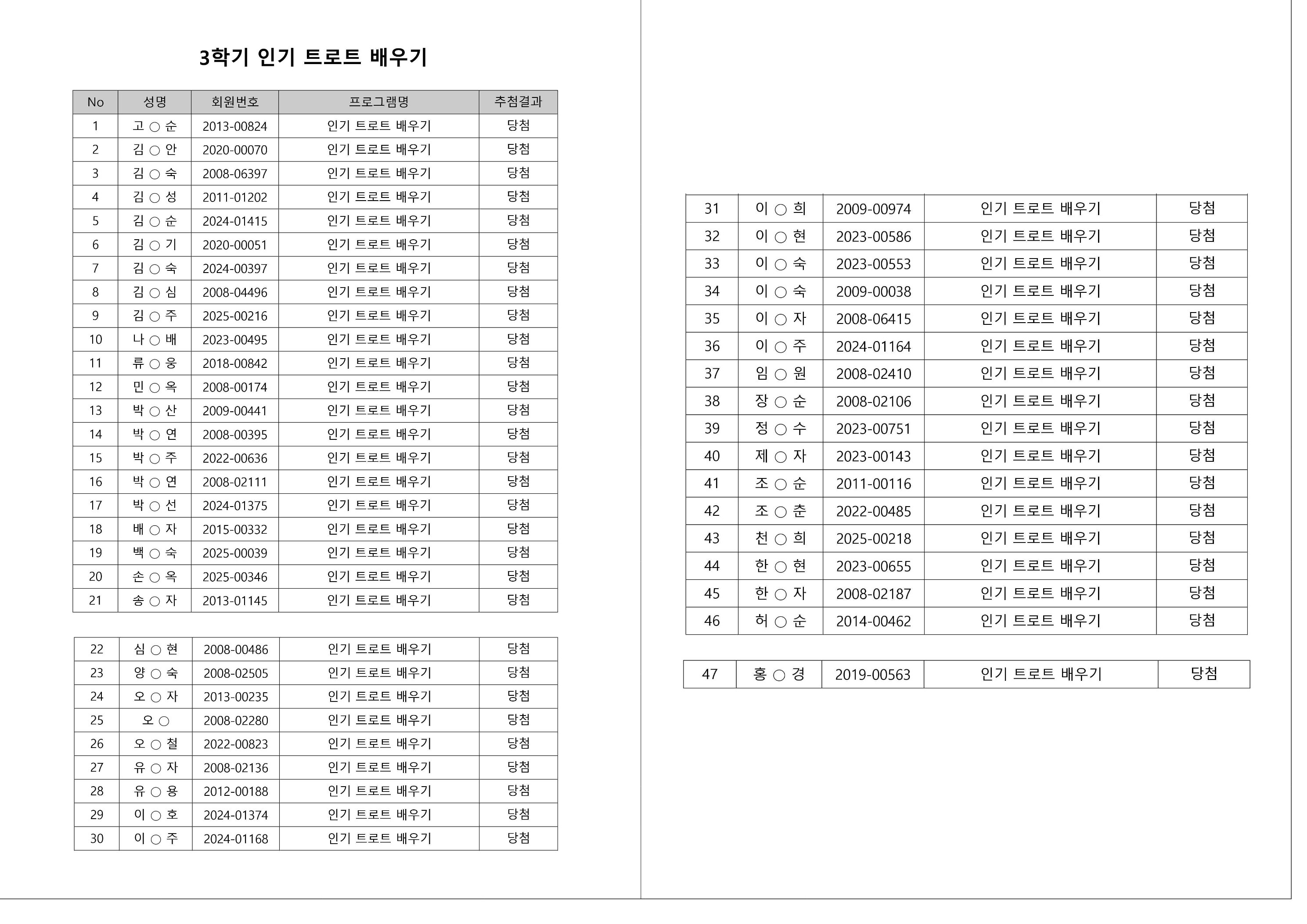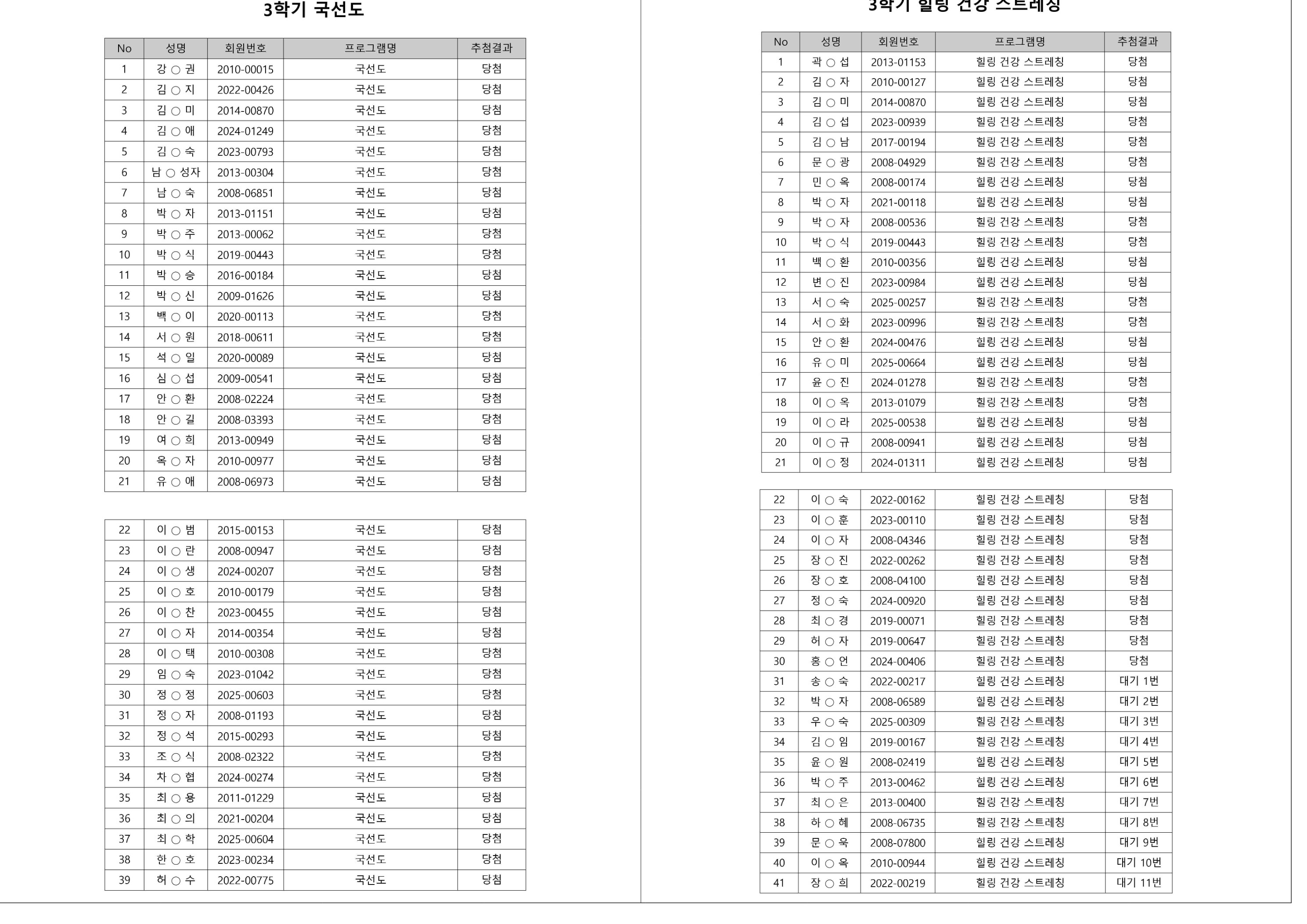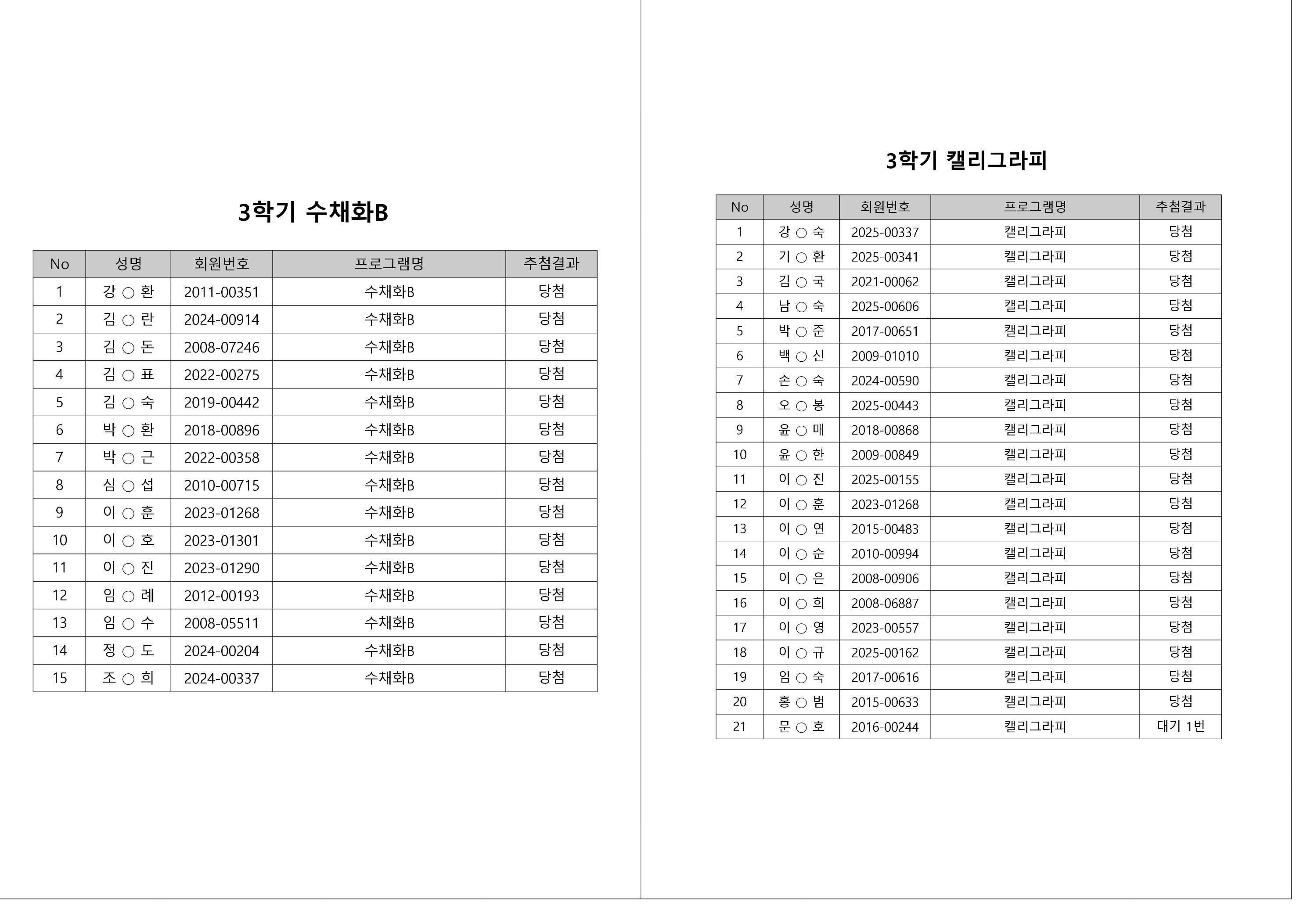 대기자의 경우, 대기자 접수 진행일자별로 매번 직접 확인하셔야합니다.