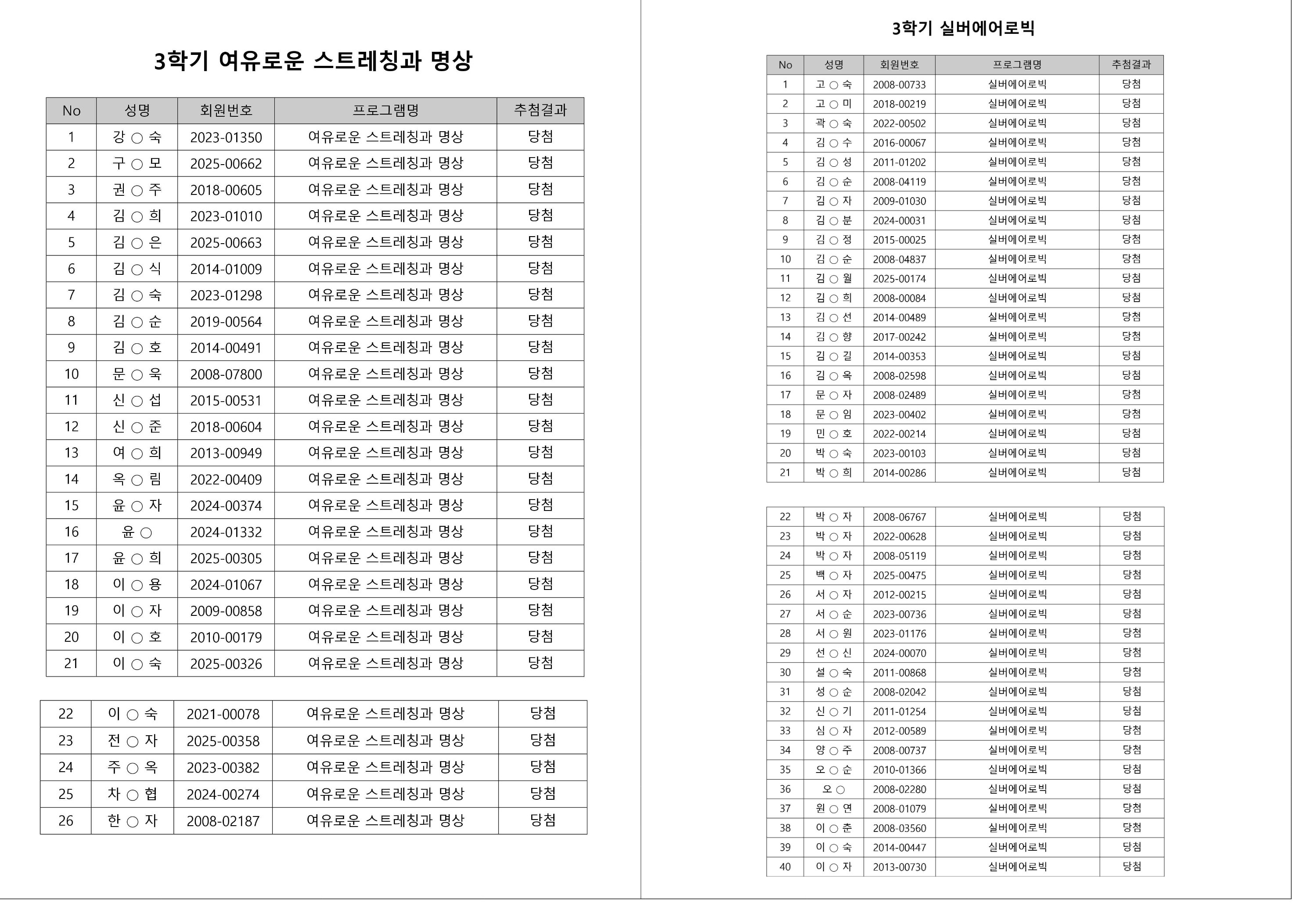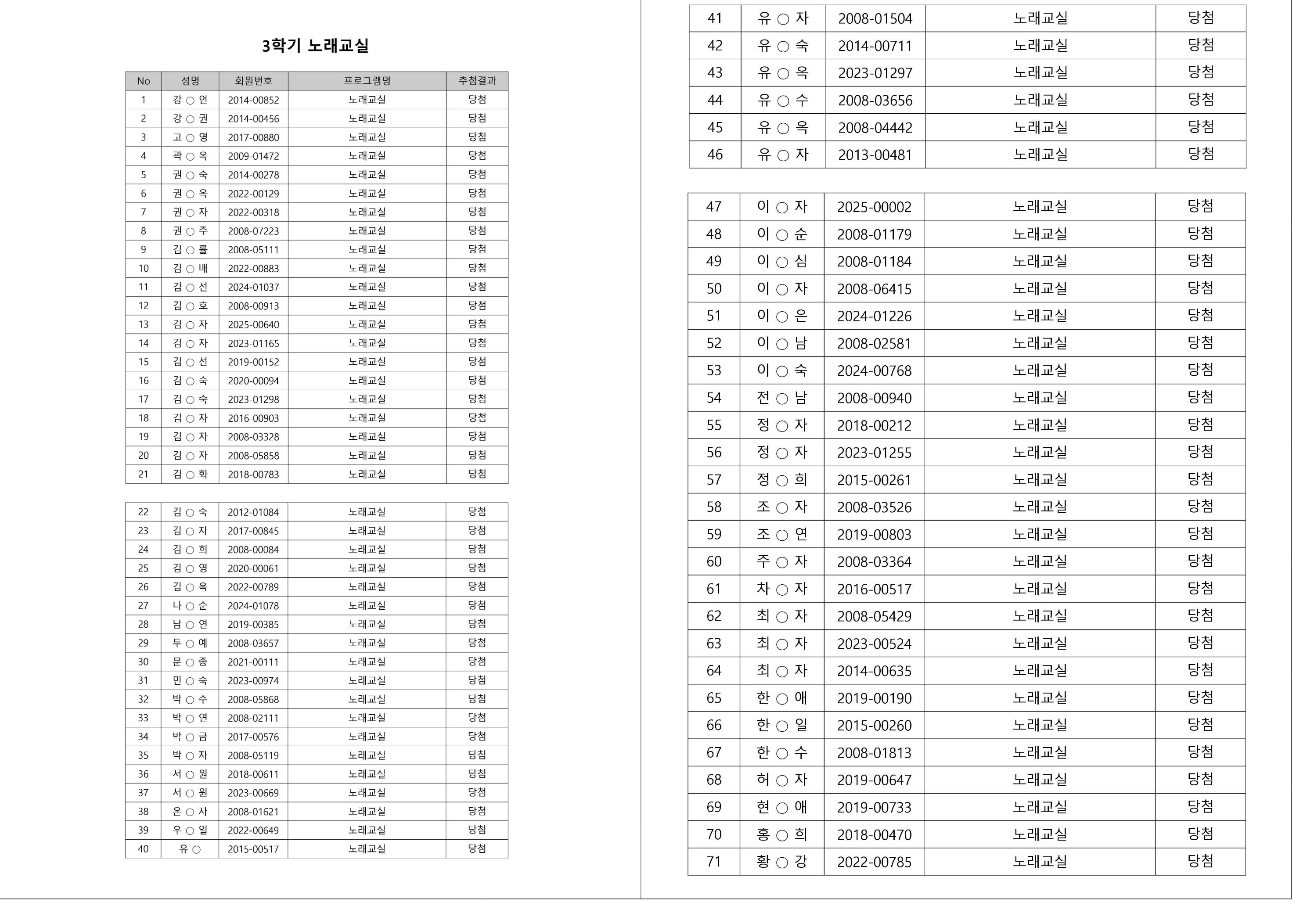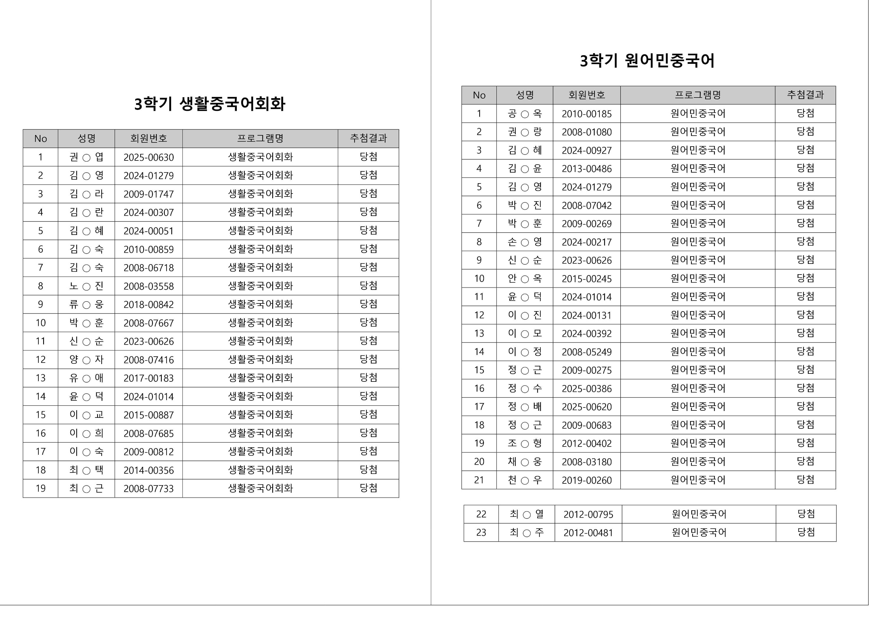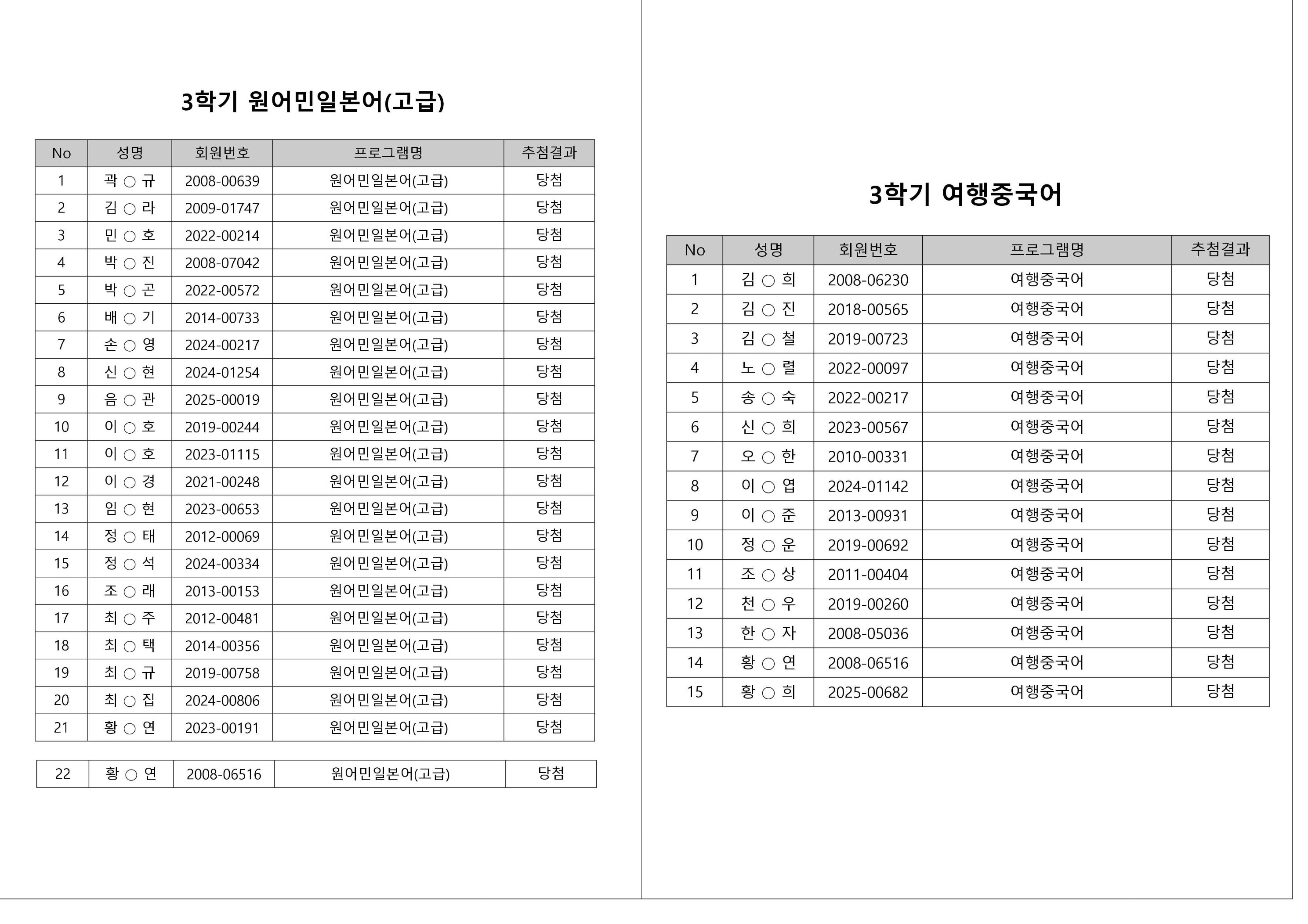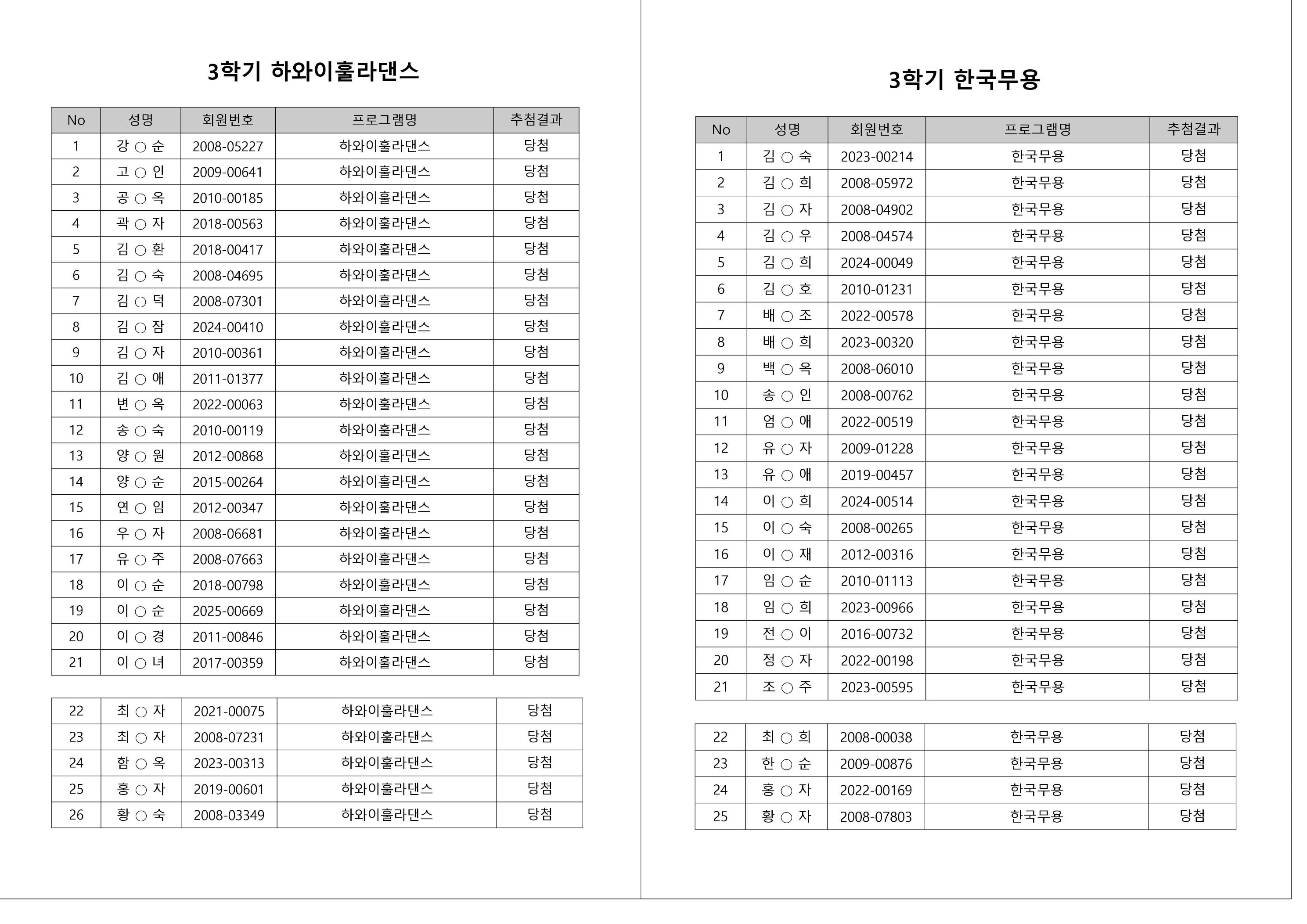 대기자의 경우, 대기자 접수 진행일자별로 매번 직접 확인하셔야합니다.