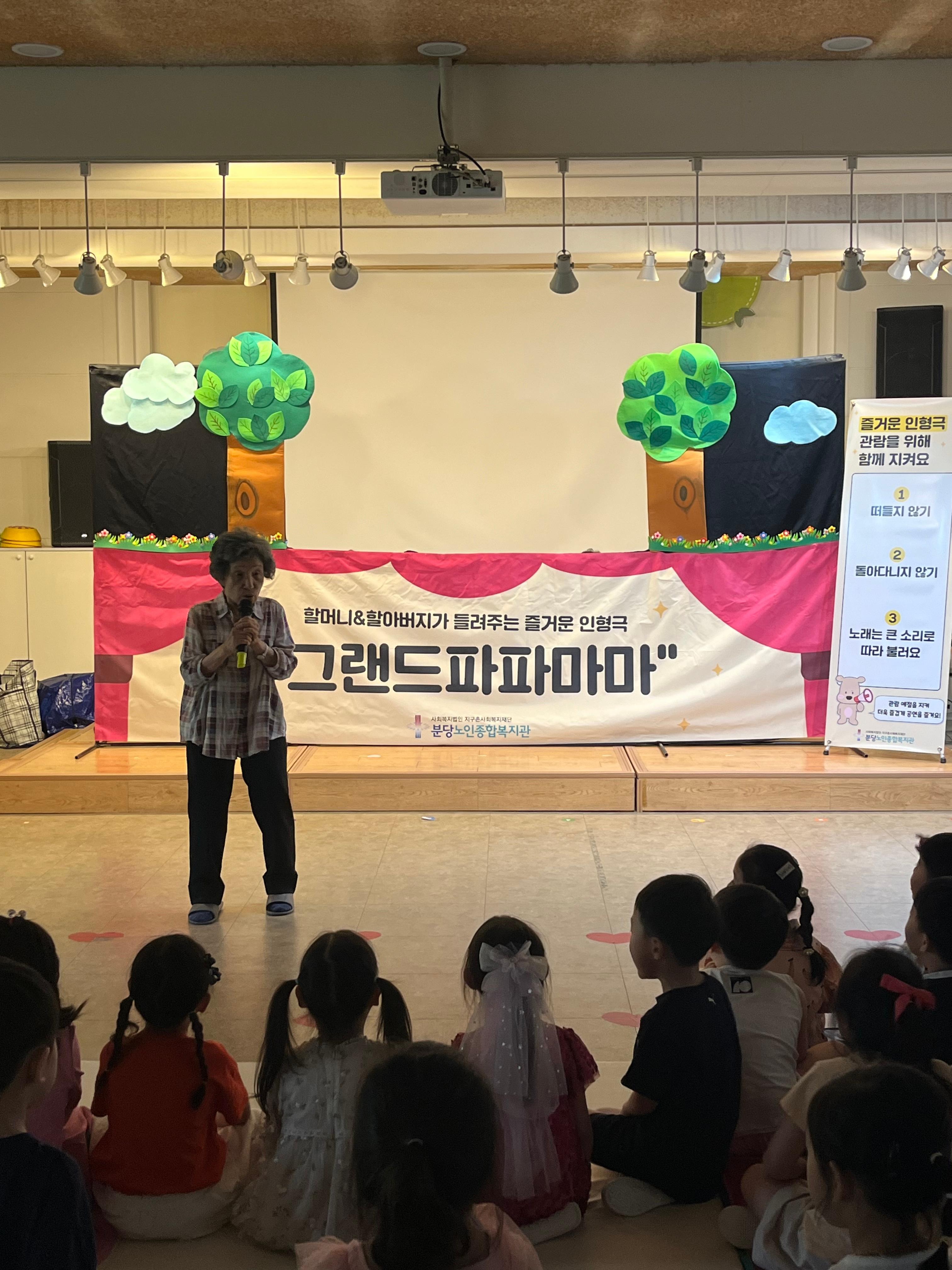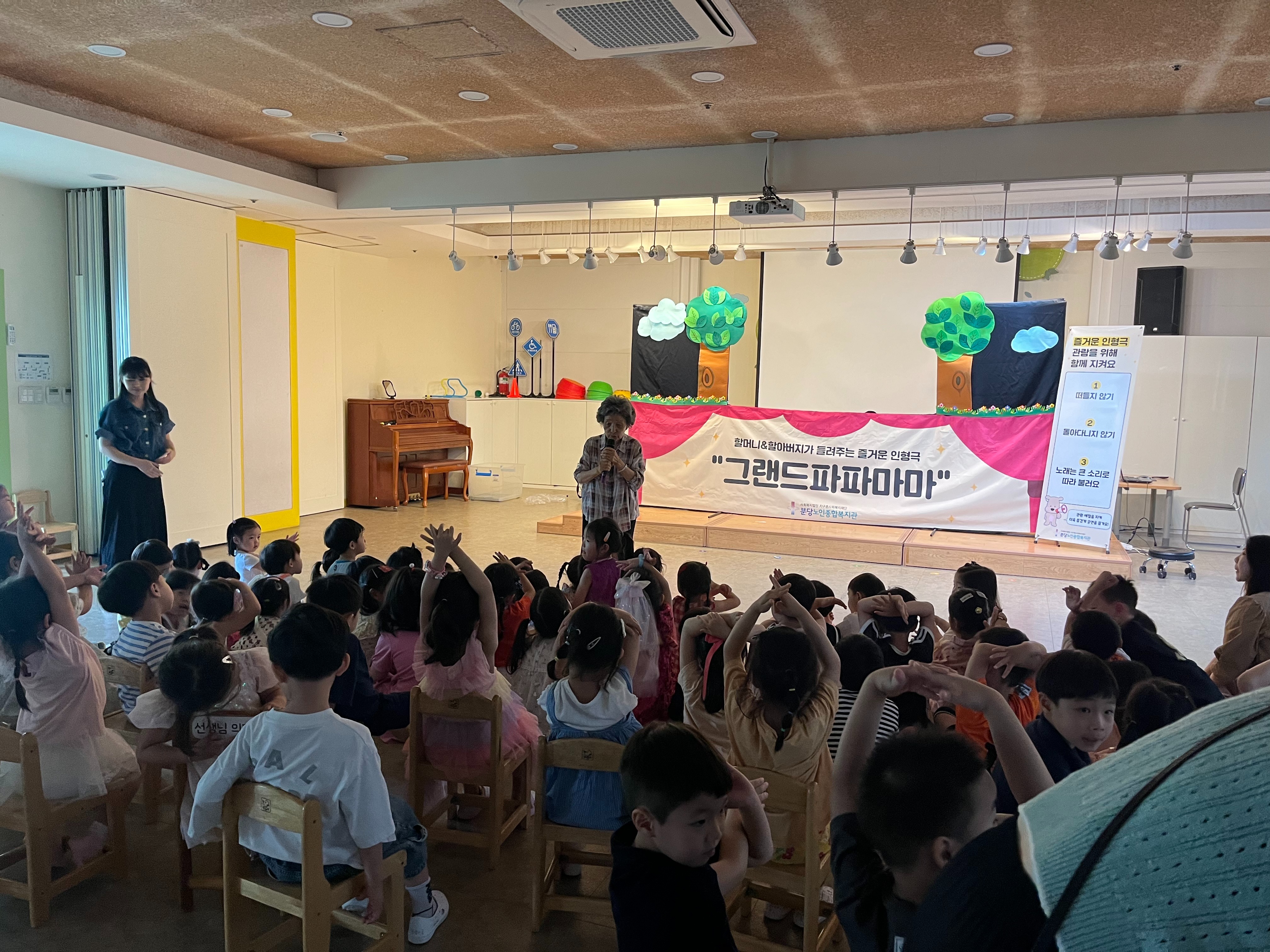오늘 실버인형극단 그랜드파파마마는 분당구에 위치한 '은혜유치원'에 방문하여