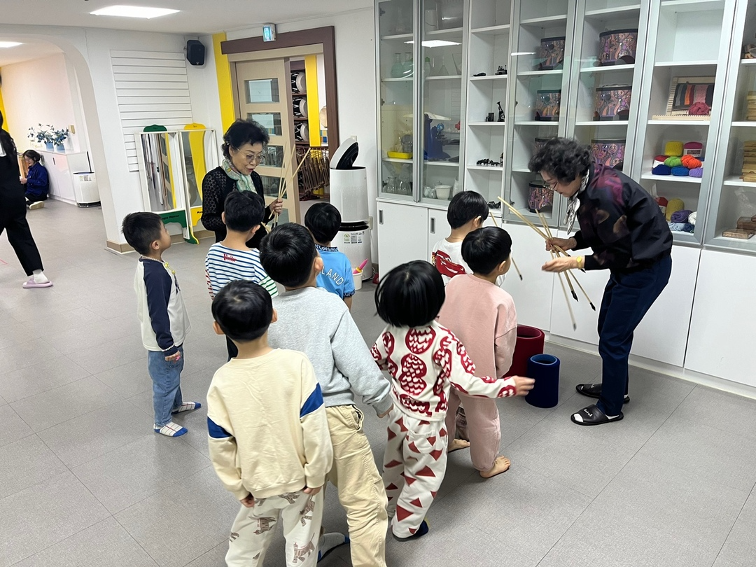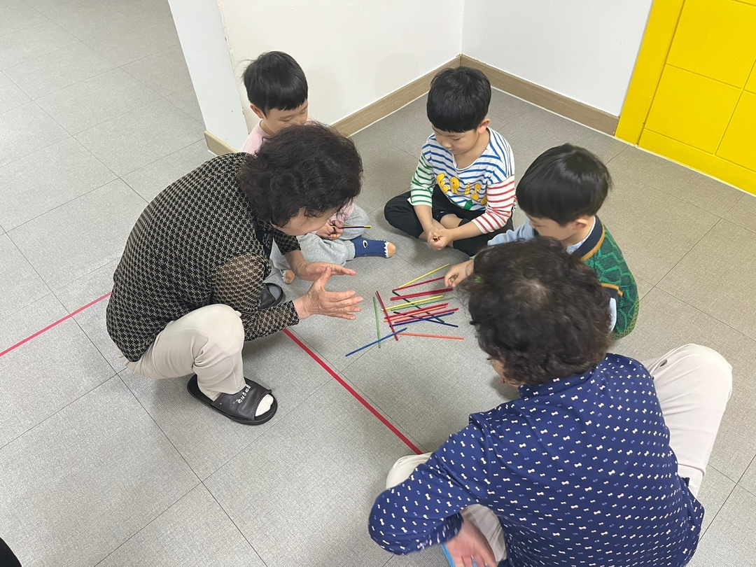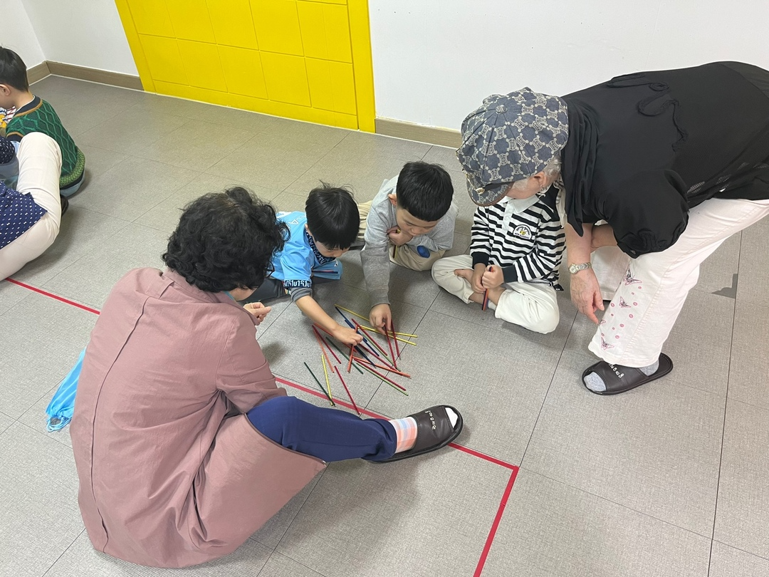 홍하유치원을 찾아 어르신들이 어릴적 추억의 놀이들을 알려주는 시간을 가졌습니다:)