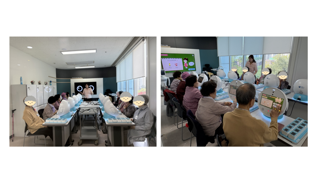 "보미"는 인지로봇으로 8주동안 인지훈련을 통한 기억력 저하를 사전에 예방하고 소근육 운동을 통한 신체활동을 함으로써 뇌에 다양한 영역에 자극을 전달하고 즐거움, 자신감, 성취감 및 만족감을 느끼게 하여 회원 스스로가 긍정적인 생각을 갖도록 하기 위해 수업을 진행합니다.
