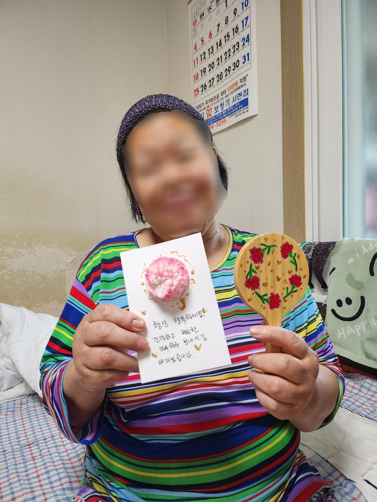 어버이날 기념 선물 및 지역사회 후원물품과 함께 스마일게이트 직원분들의 손편지와 수제작 카네이션 손거울 후원으로 보다 풍성하게 어르신들에게 감사를 전할 수 있었습니다.