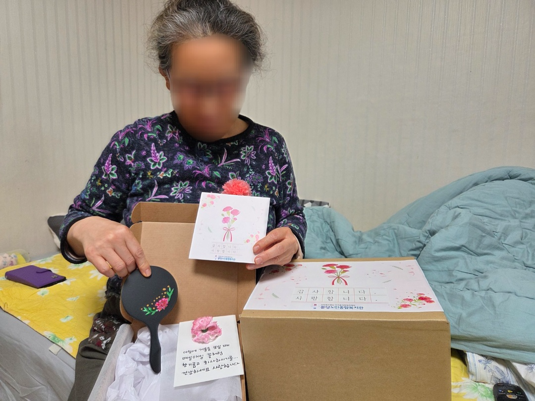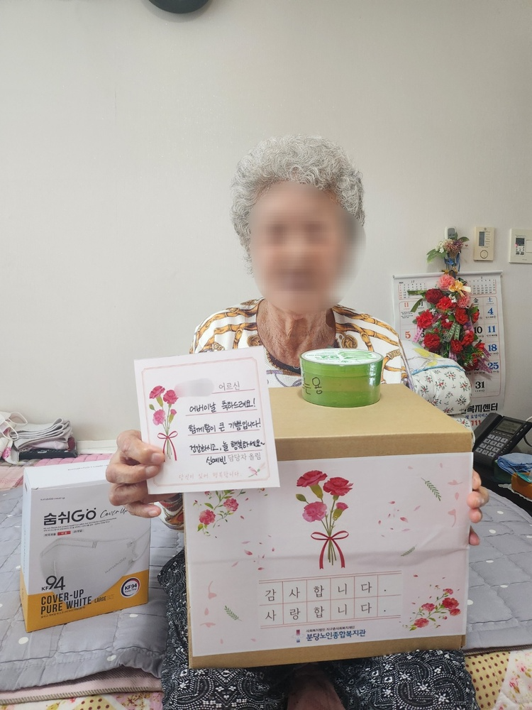 지역돌봄팀에서는 가정의 달인 5월을 맞이하여 분당구 지역사회에 계시는 위기 및 취약어르신이 외롭지 않고 행복한 어버이날을 보내실 수 있도록 지난 2일 간 어버이날 감사행사를 진행했습니다.