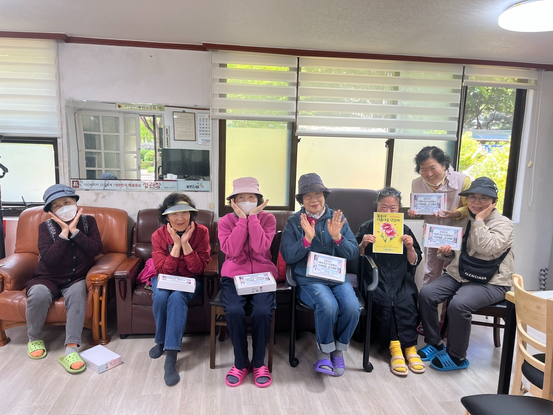 이번 행사는 지역사회 경로당 활성화사업의 일환으로 총 42개소 경로당에 떡 280세트와 안부서신을 전달하였습니다.