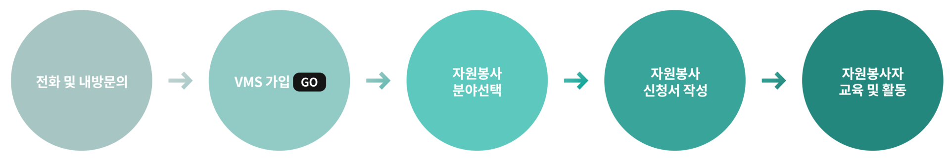 VMS에 회원가입을 한 뒤 복지관에 오셔서 봉사활동 신청서를 작성해야 합니다.